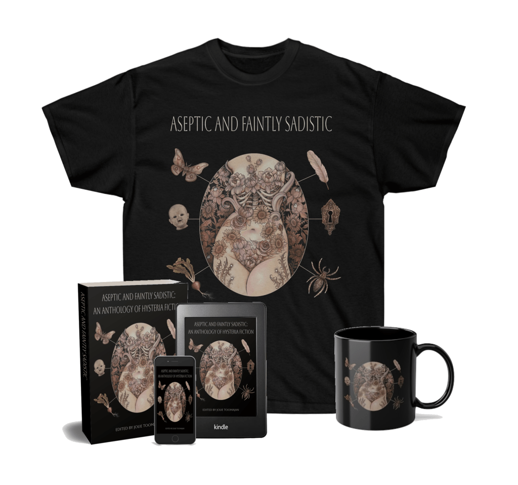 Cosmic Horror Monthly is running an early bird bundle with all sorts of cool book swag for another week or so, and then they’ll be opening pre-sales for the book alone: “Aseptic and Faintly Sadistic” is an anthology of hysteria fiction. Proceeds go to the Chicago Abortion Fund.
