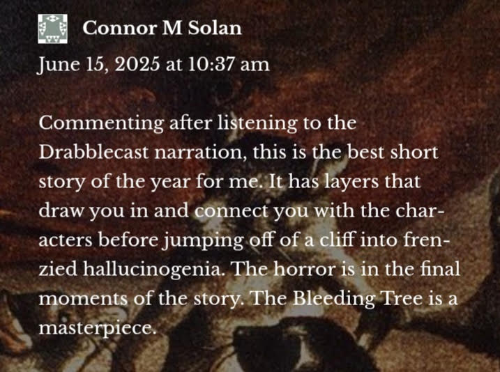 Thank you, Connor. It means the world to know a story works so well for you, and it’s very generous of you to take the time to say so.